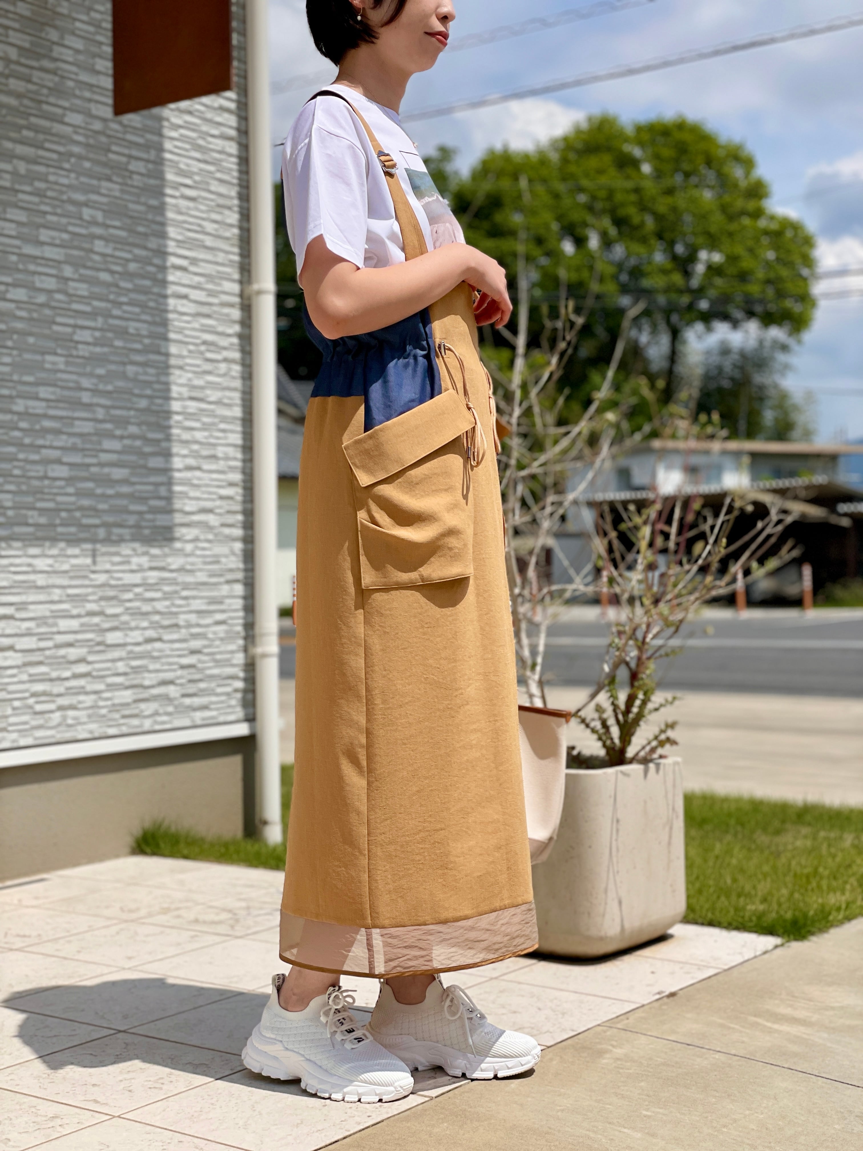 さりげない異素材の組み合わせが光るジャンパードレス。