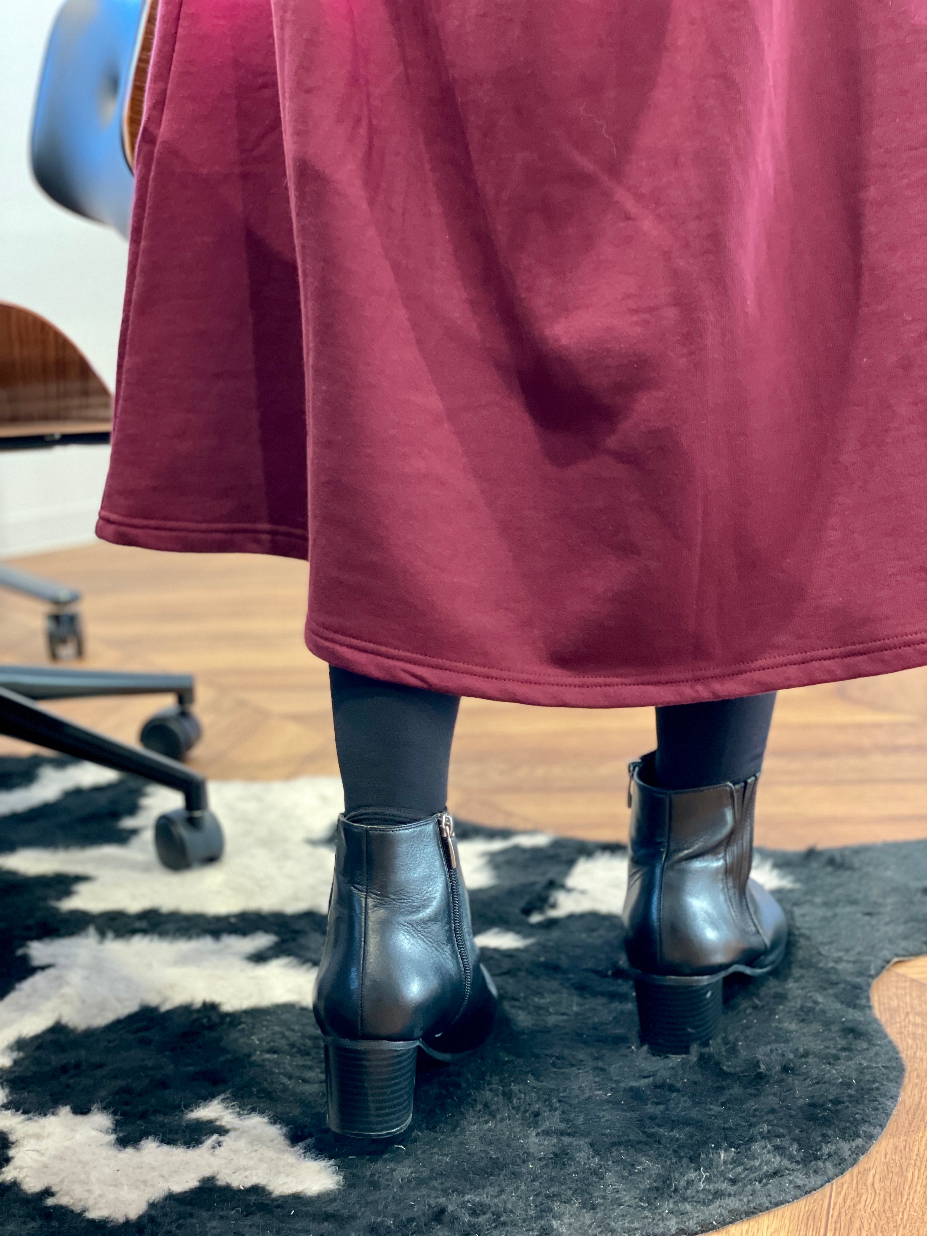 ハイウエストのふわふわの裏起毛で、おなか周りから足首までしっかり防寒してくれます。