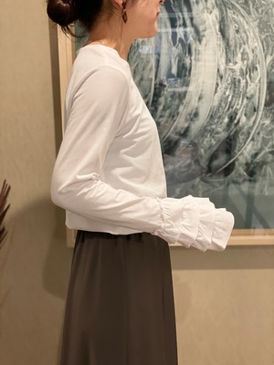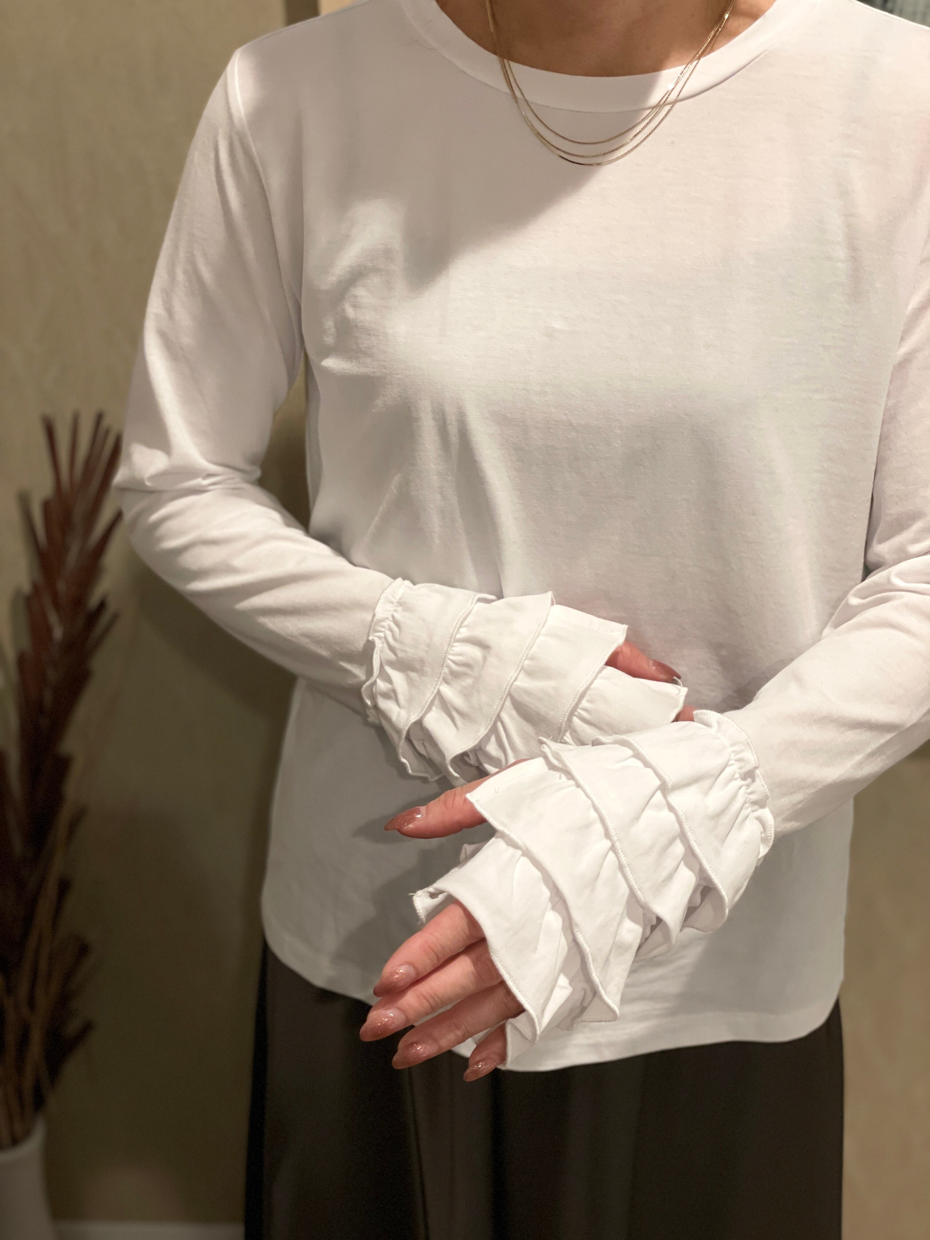 袖口から出てくるフリルのレイヤードがとても印象的で、