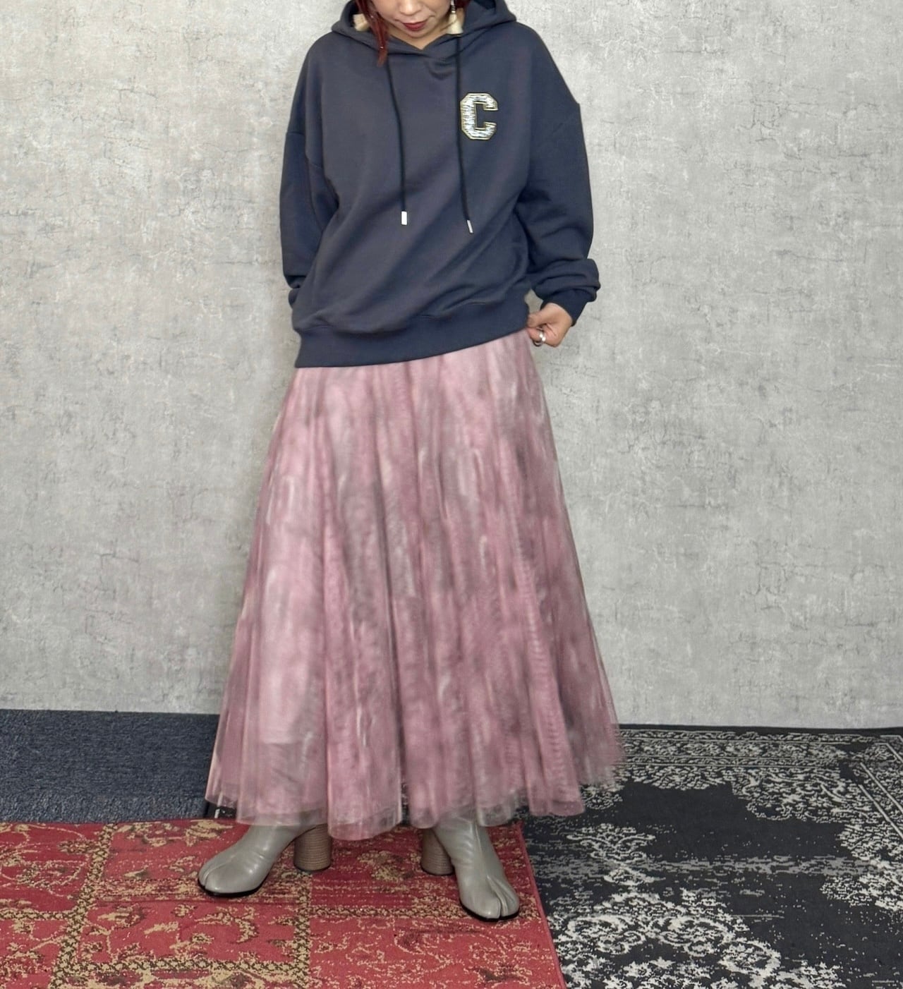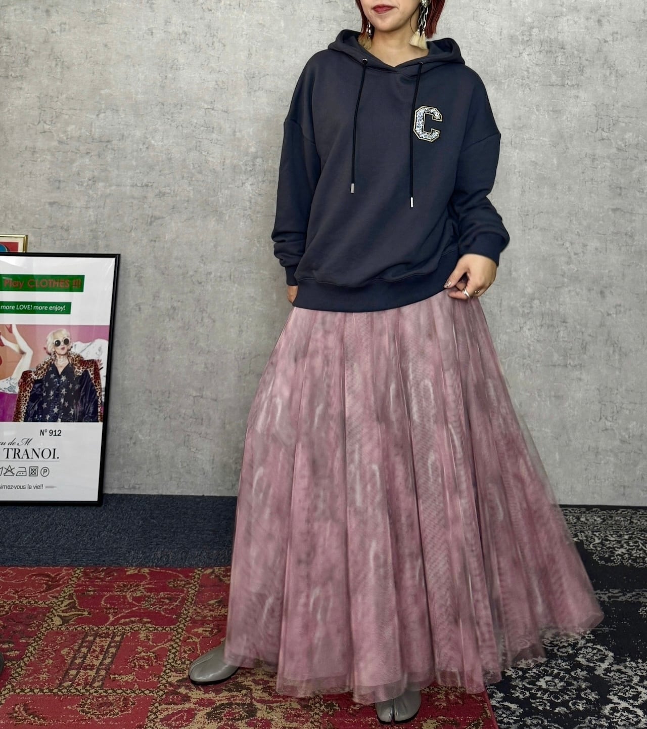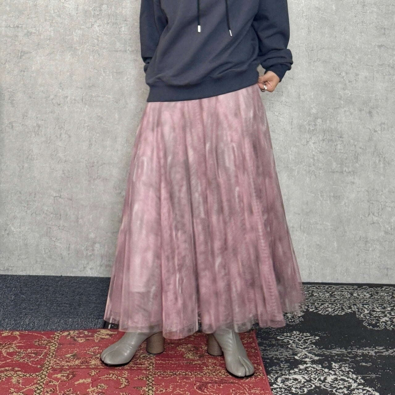 こなれ感のあるチュールスカート。