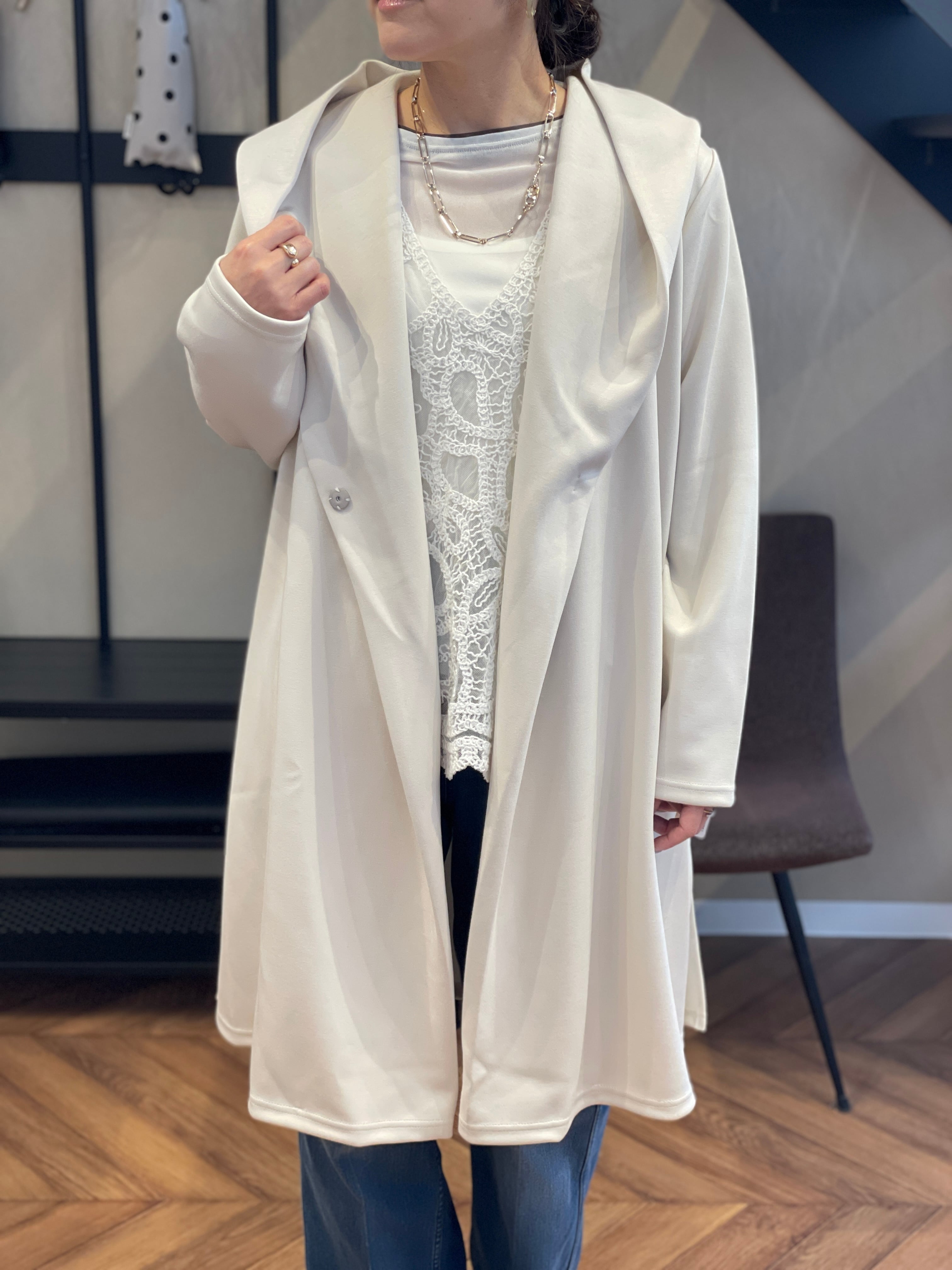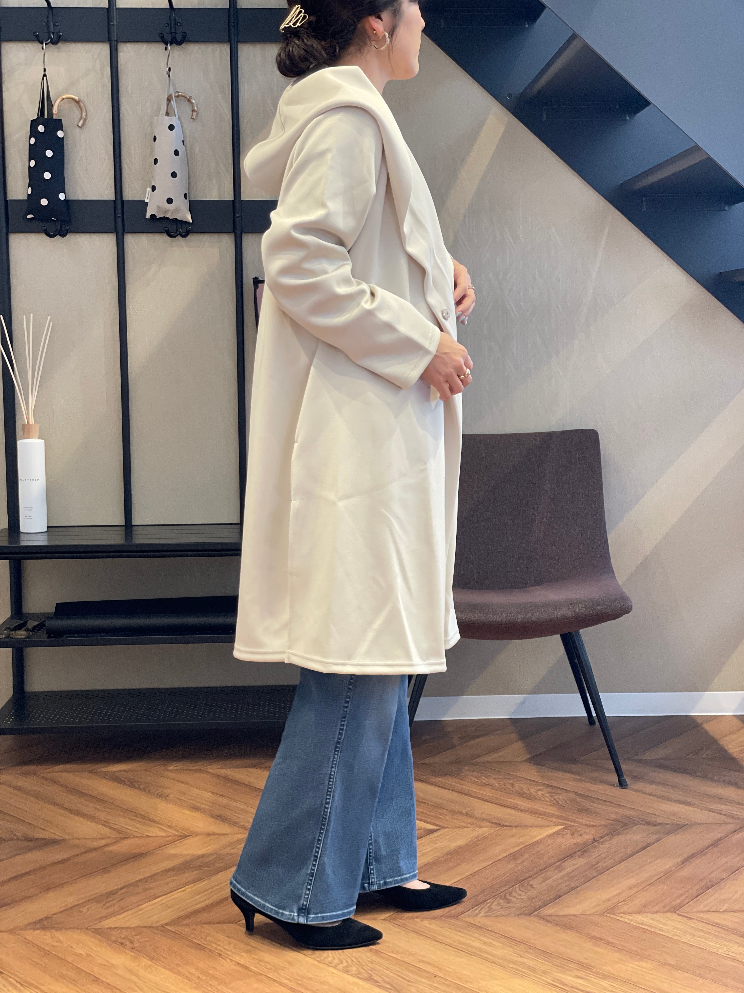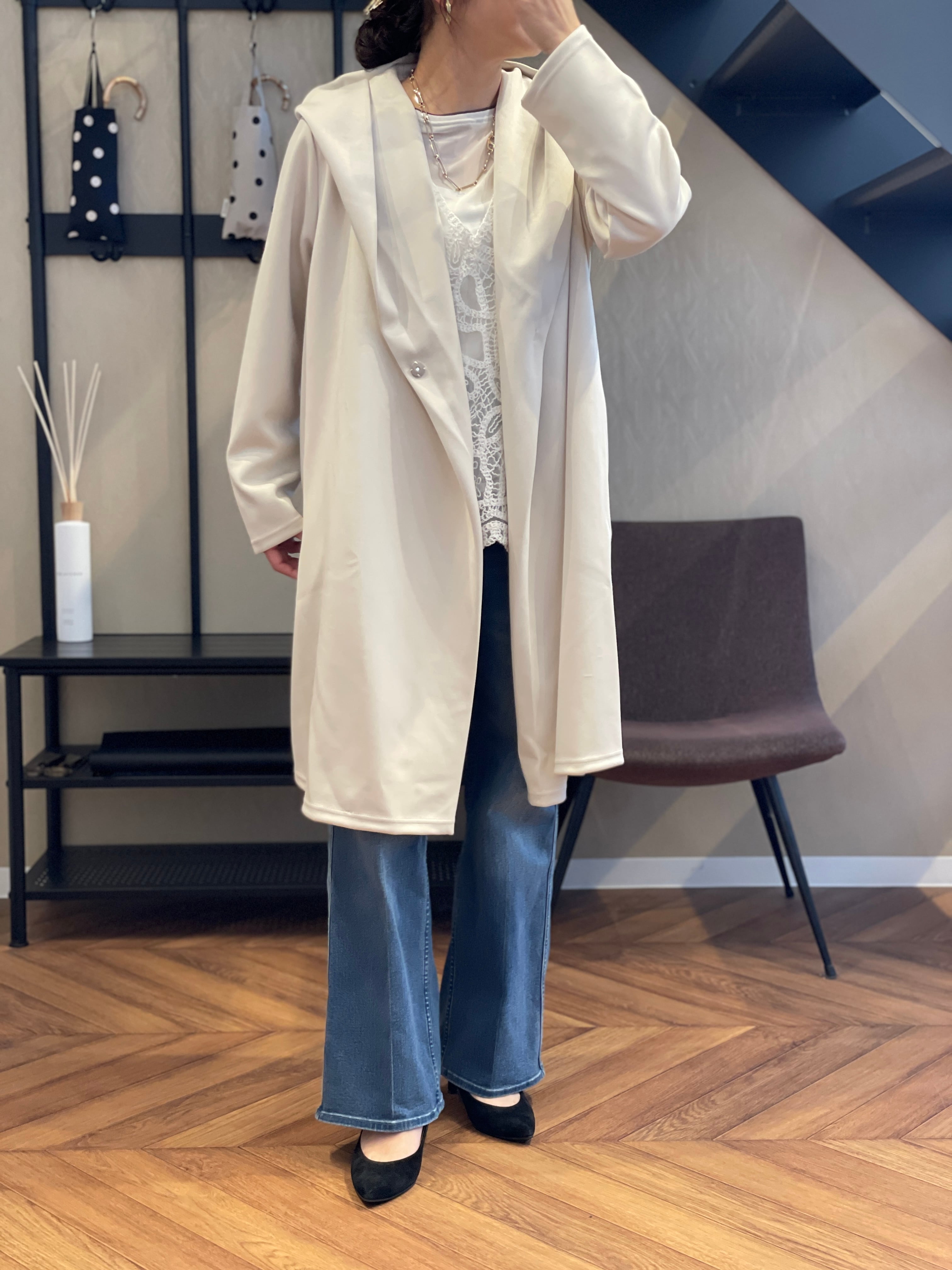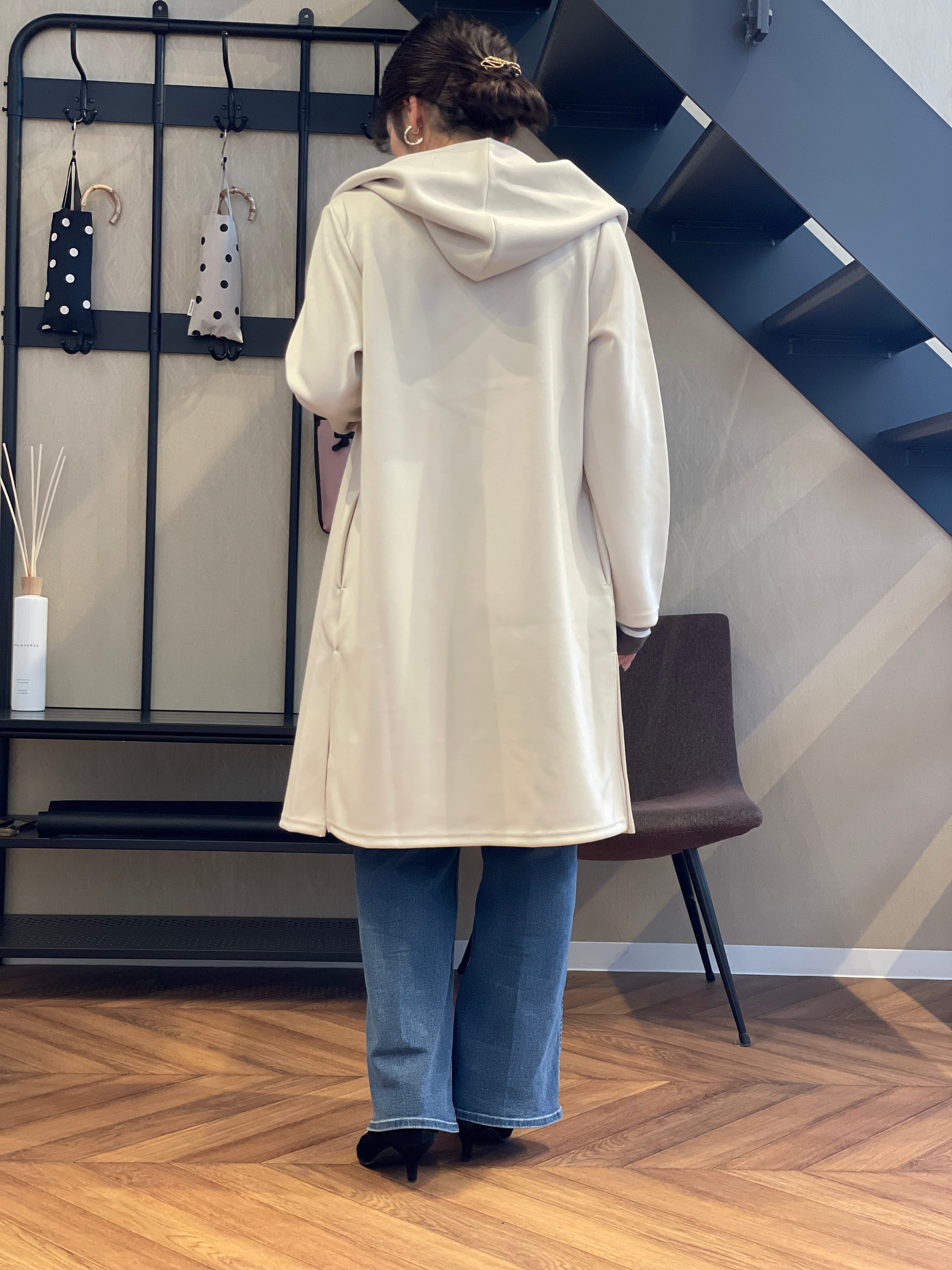 フーディなのに艶っぽくてきれいめにスタイリング可能なところが