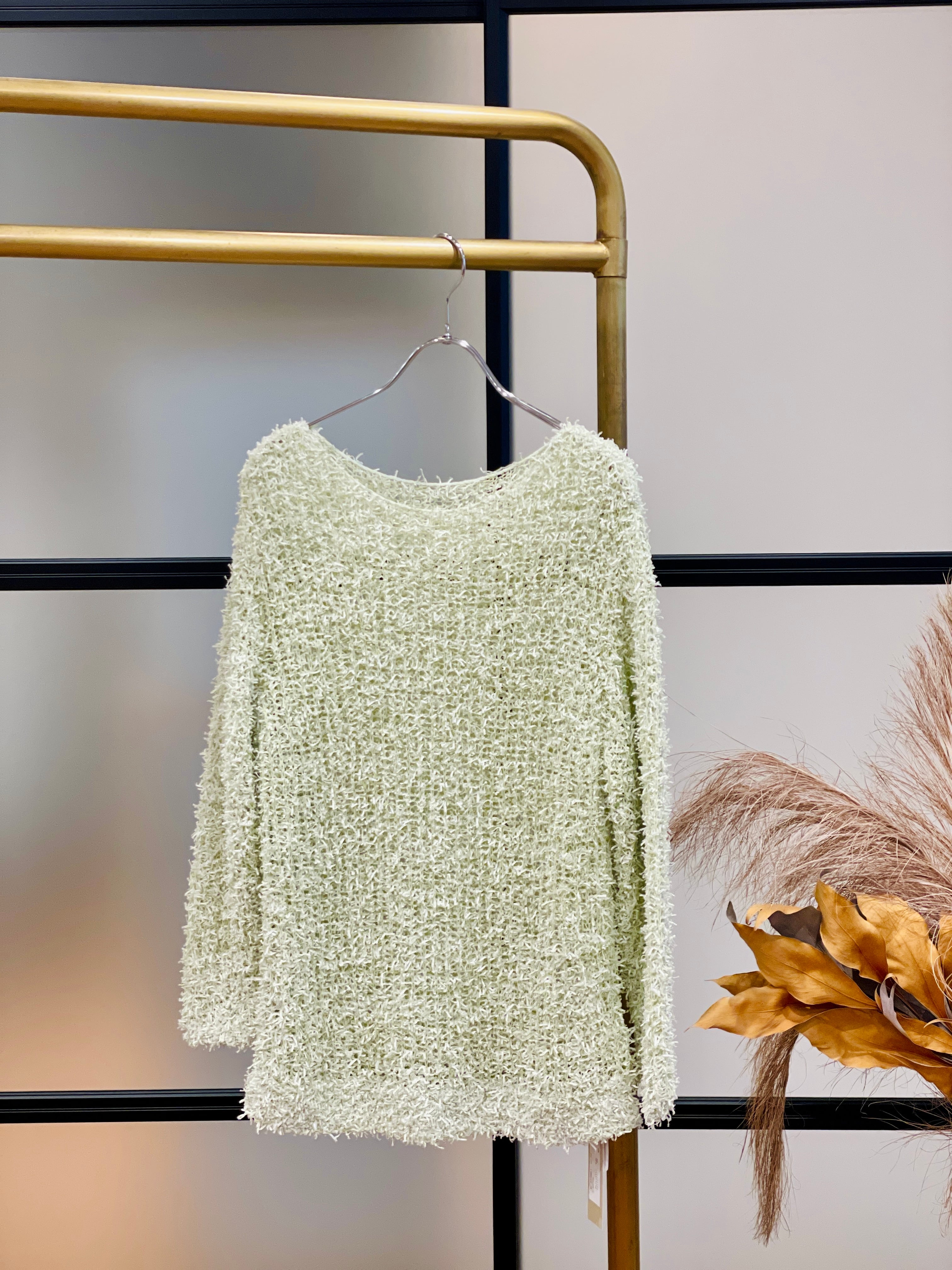 繊細なフリンジヤーンが生み出す、軽やかで表情豊かなニットプルオーバーです。