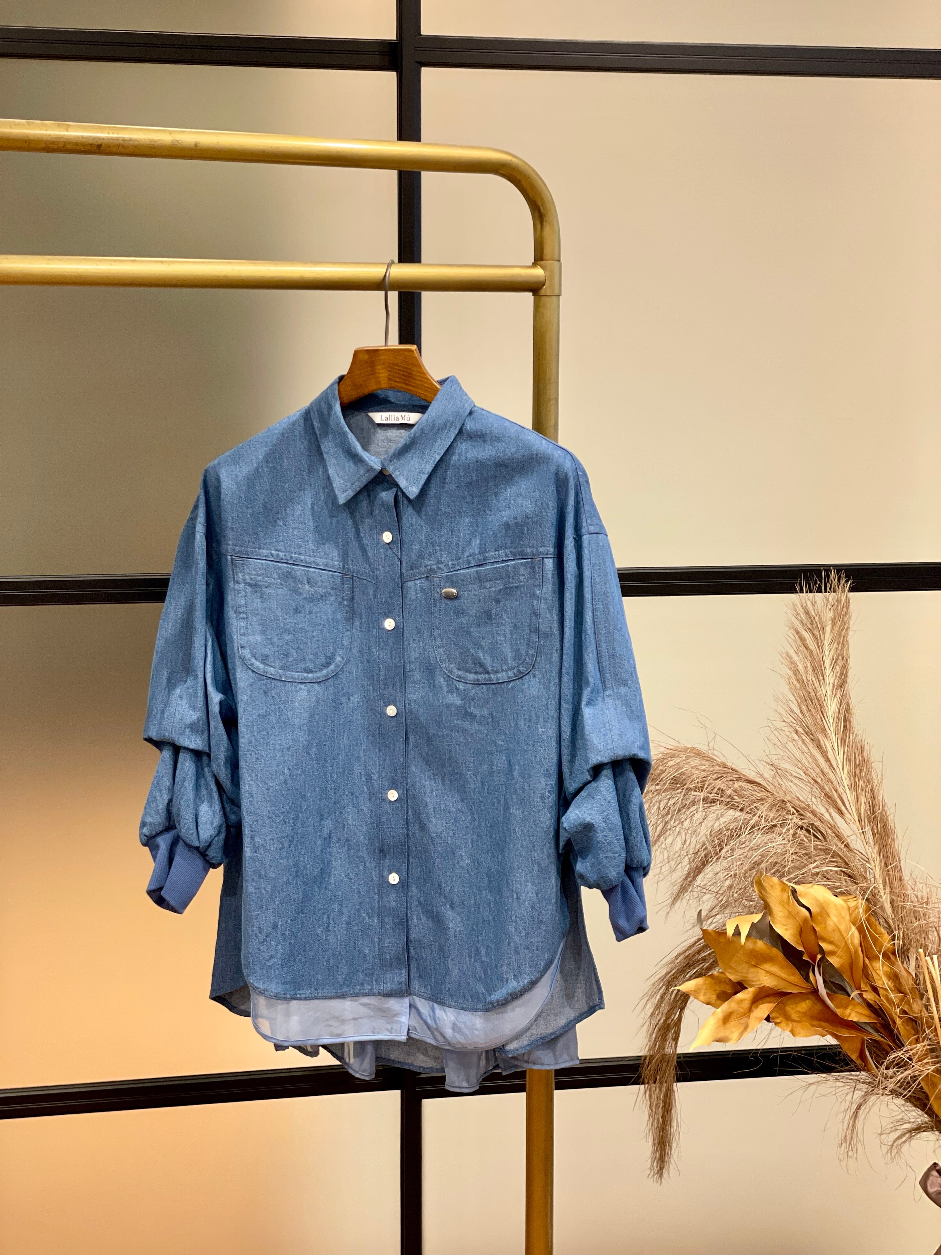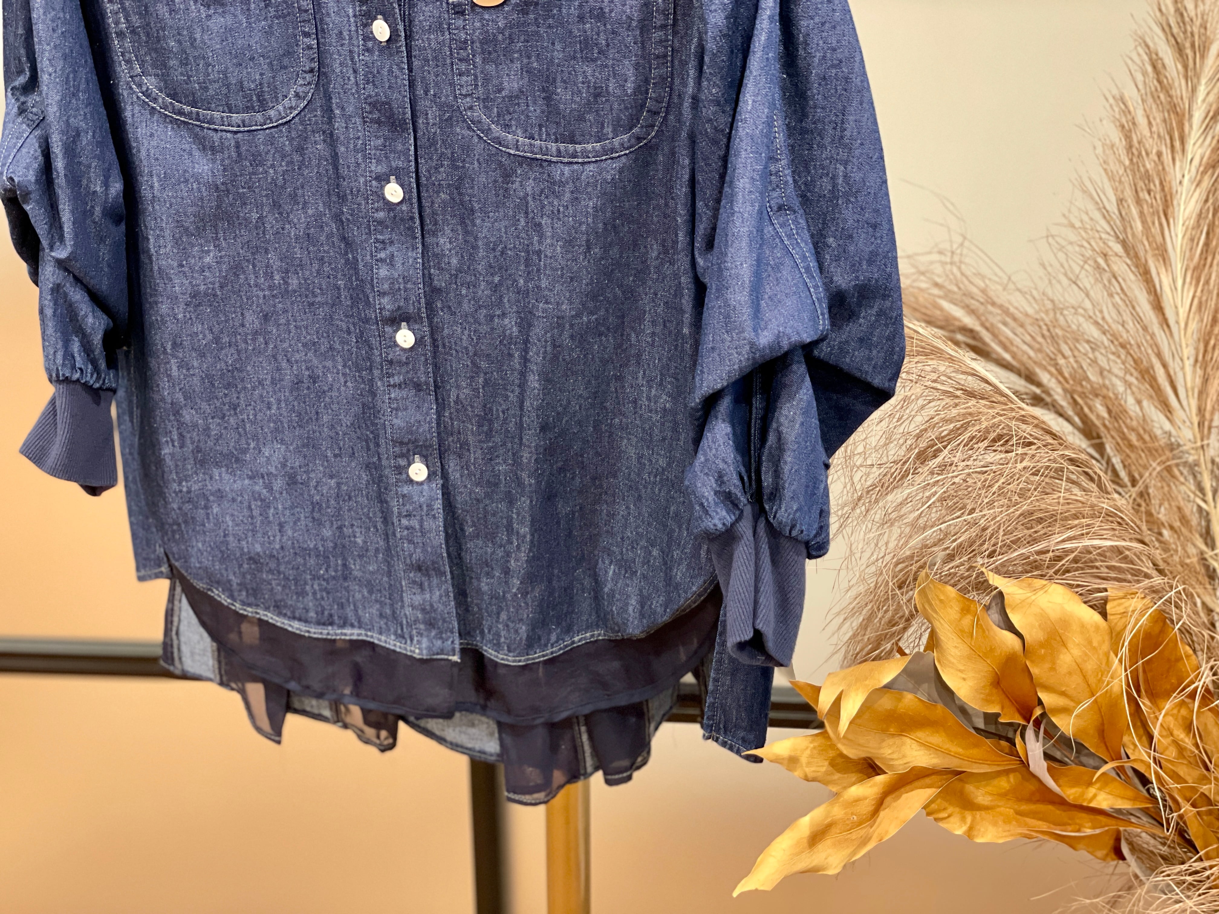 オーガンジーをドッキングし、大人の透け感をプラスしたデニムシャツです。