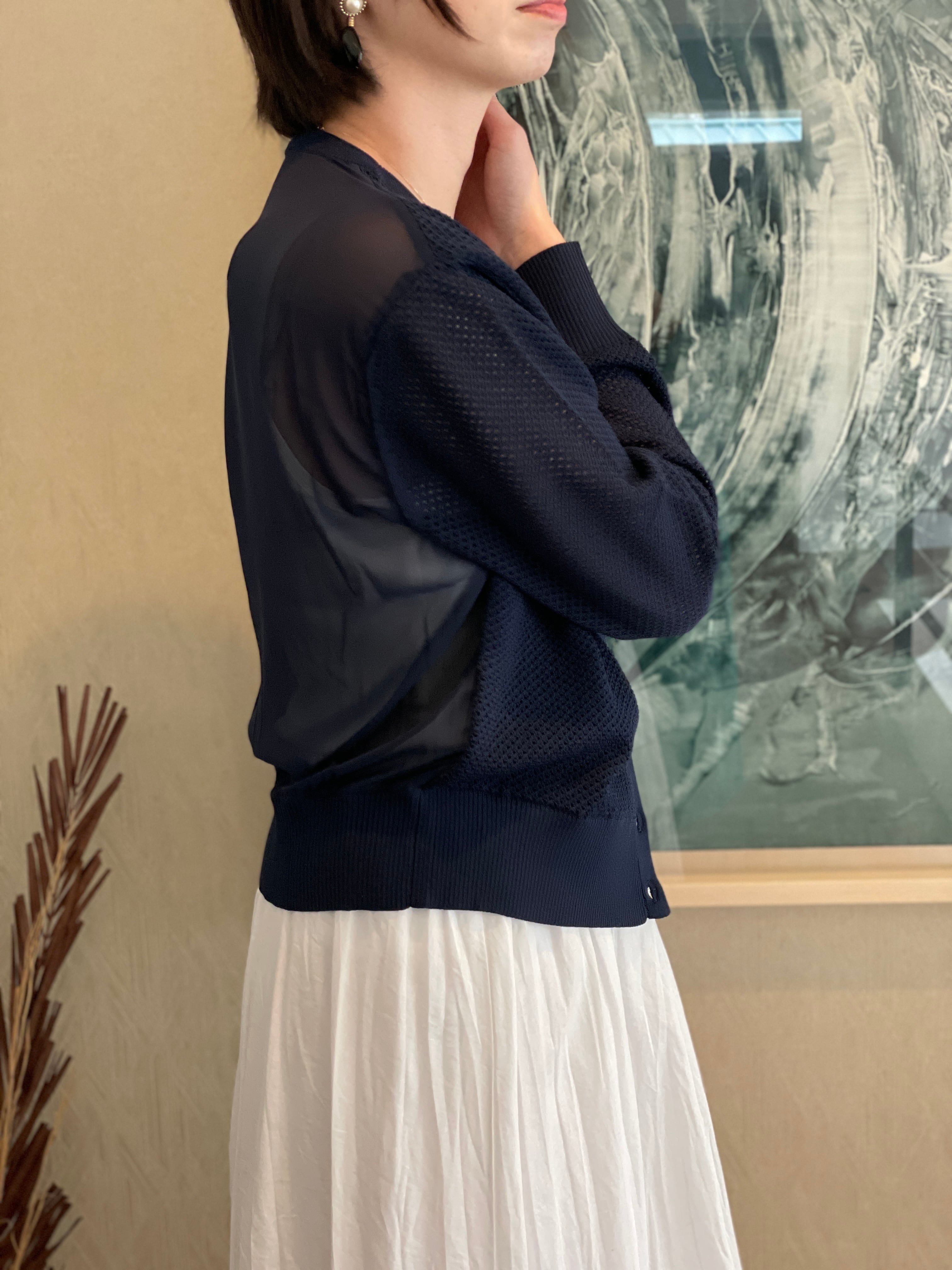 軽い着心地と程よい透け感で使い勝手抜群のメッシュ×シアーカーデ