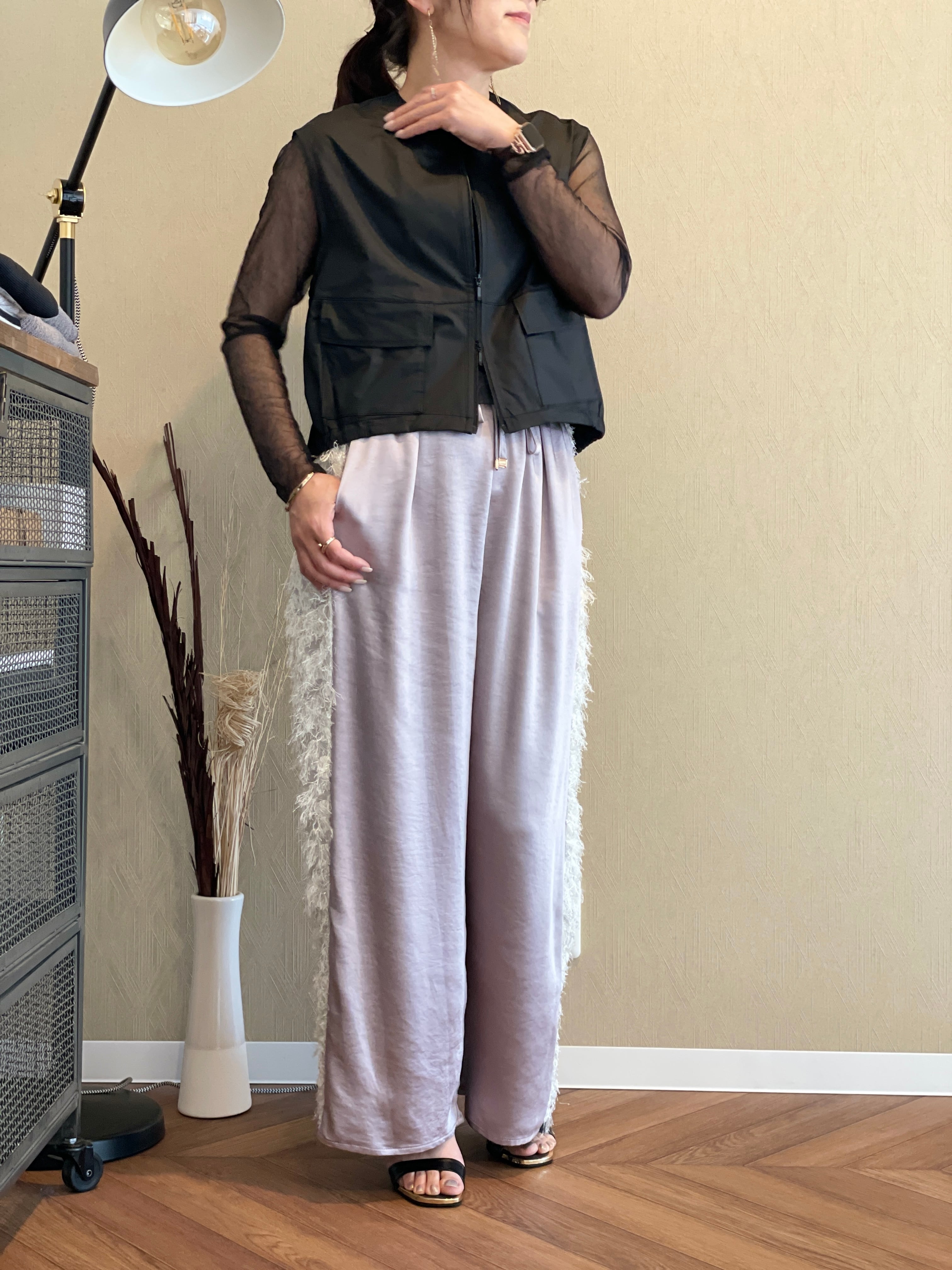 カーディガンやベストをレイヤードしたりと