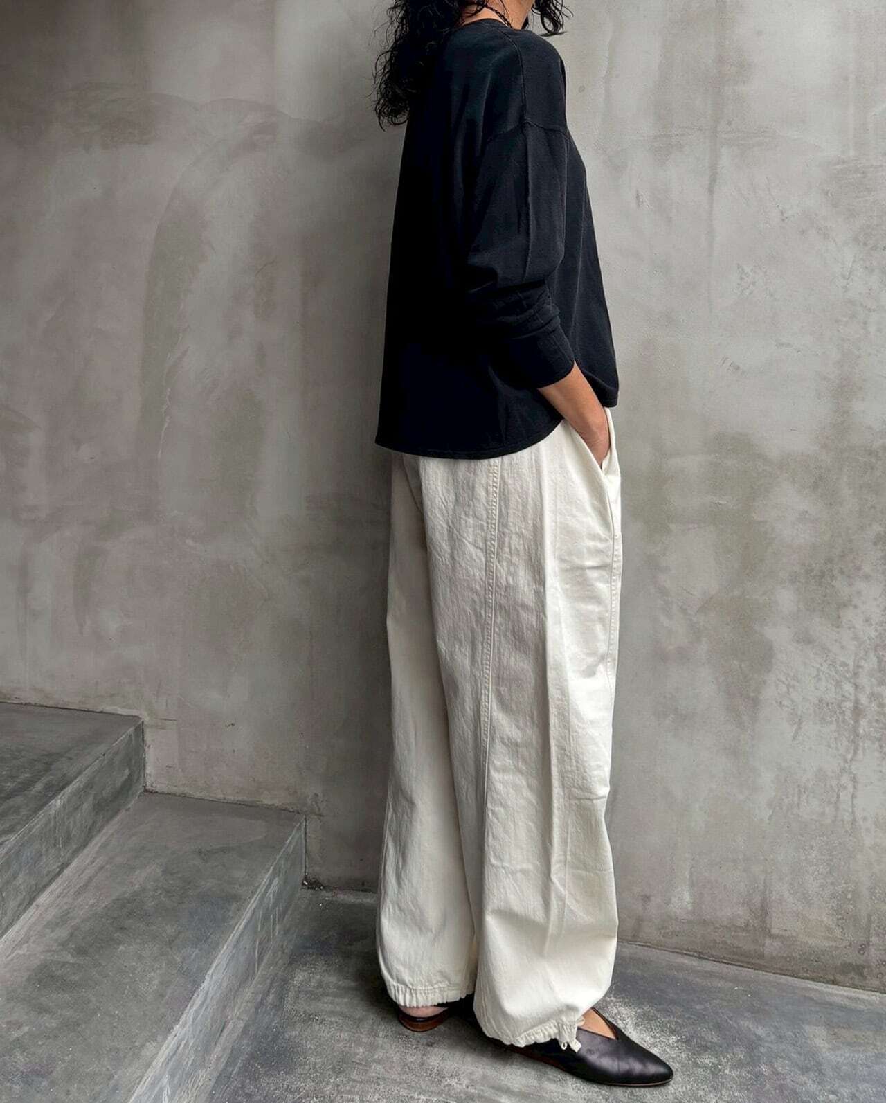 ヒップから裾にかけて丸みを帯びたデザインが特徴の