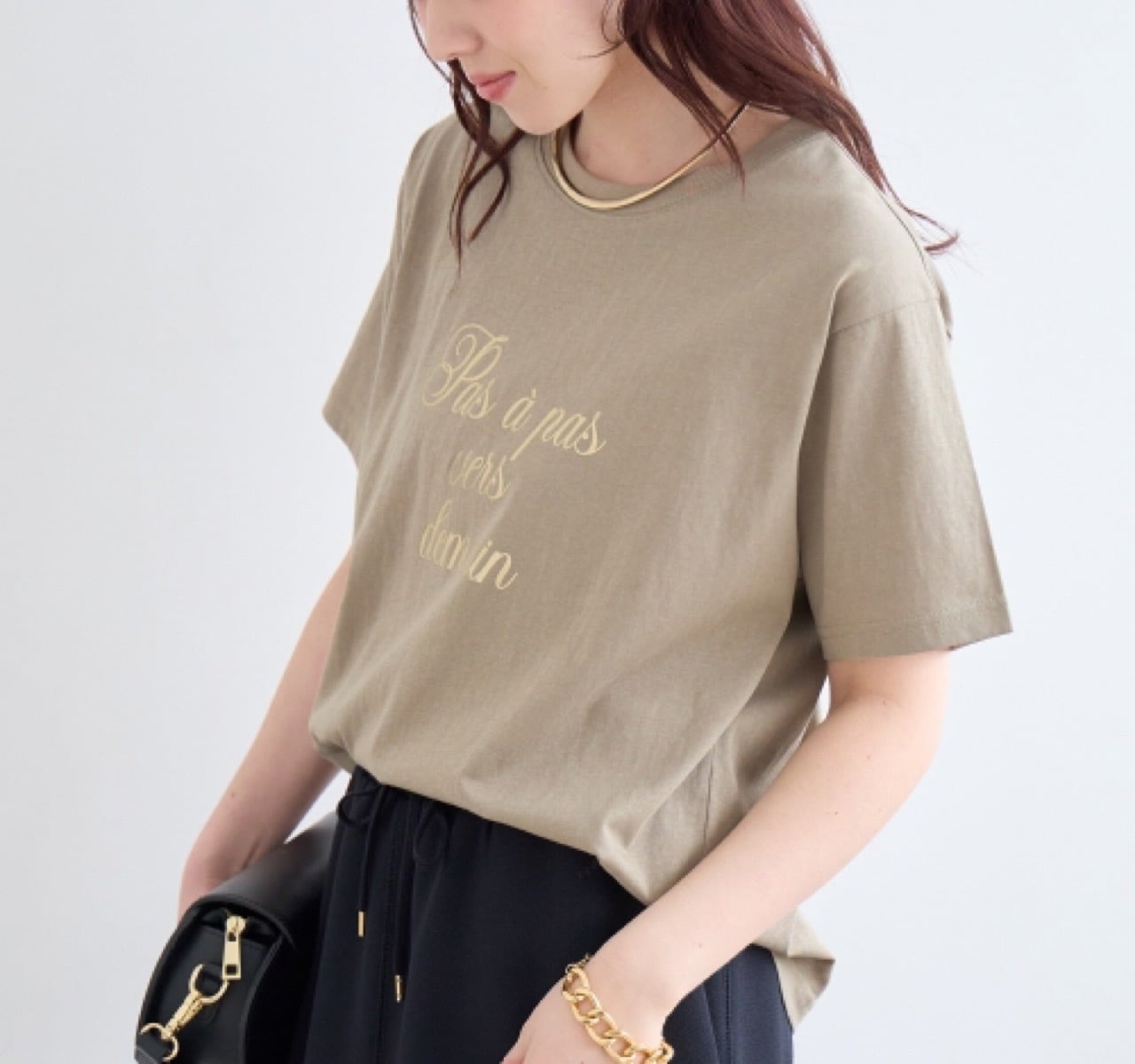 ほどよい落ち感もあり、カジュアルさを抑えた一枚です。