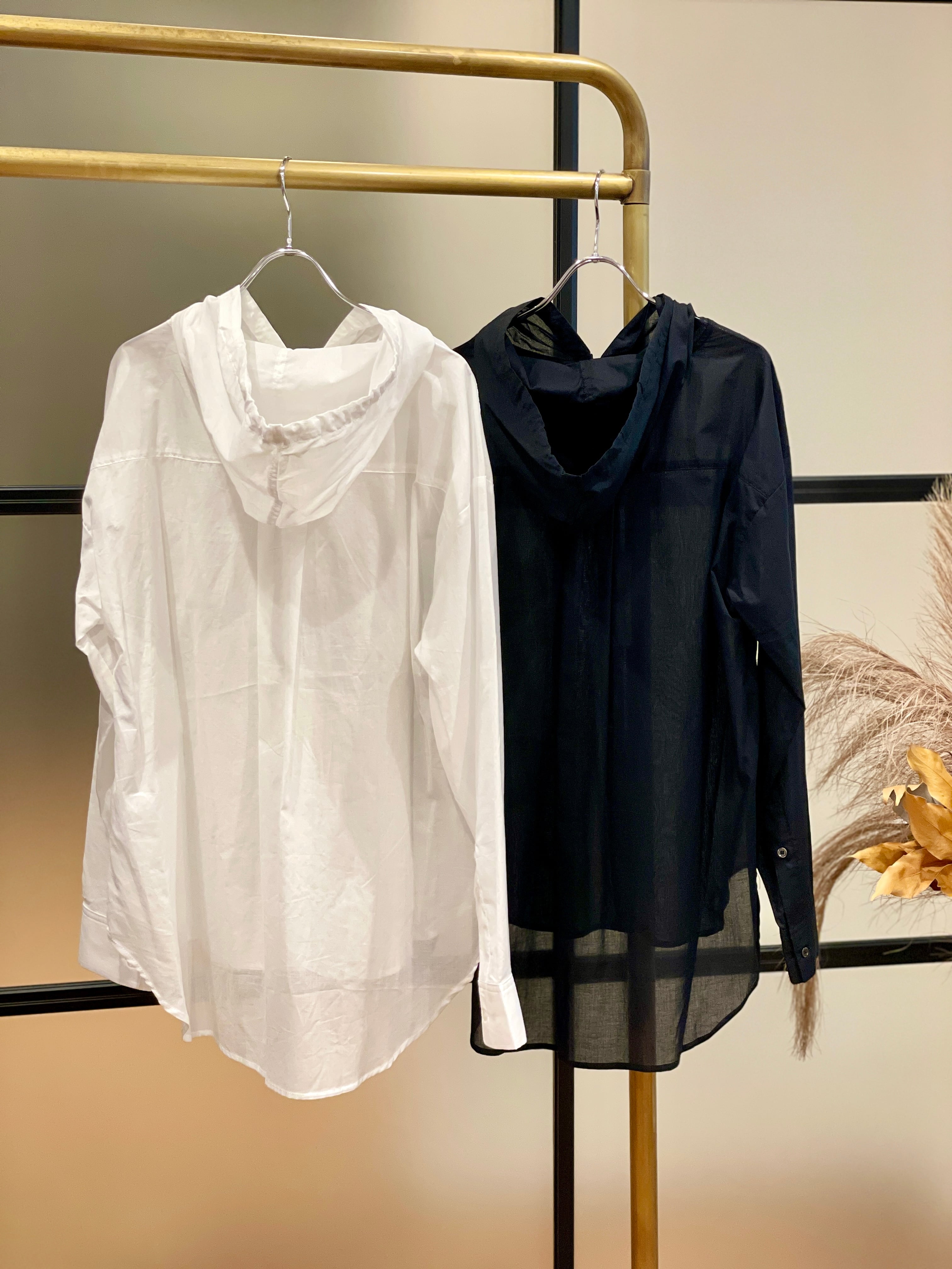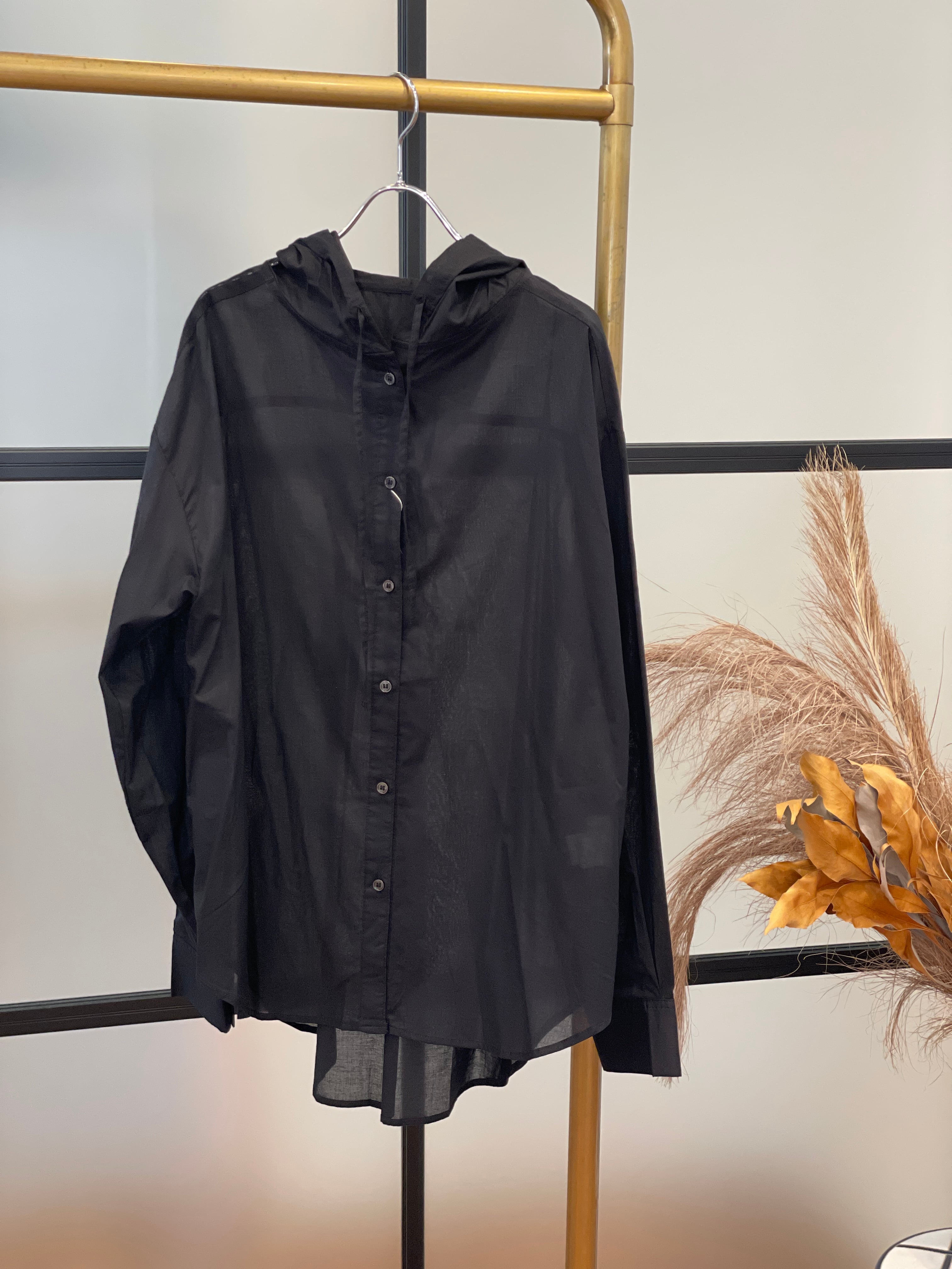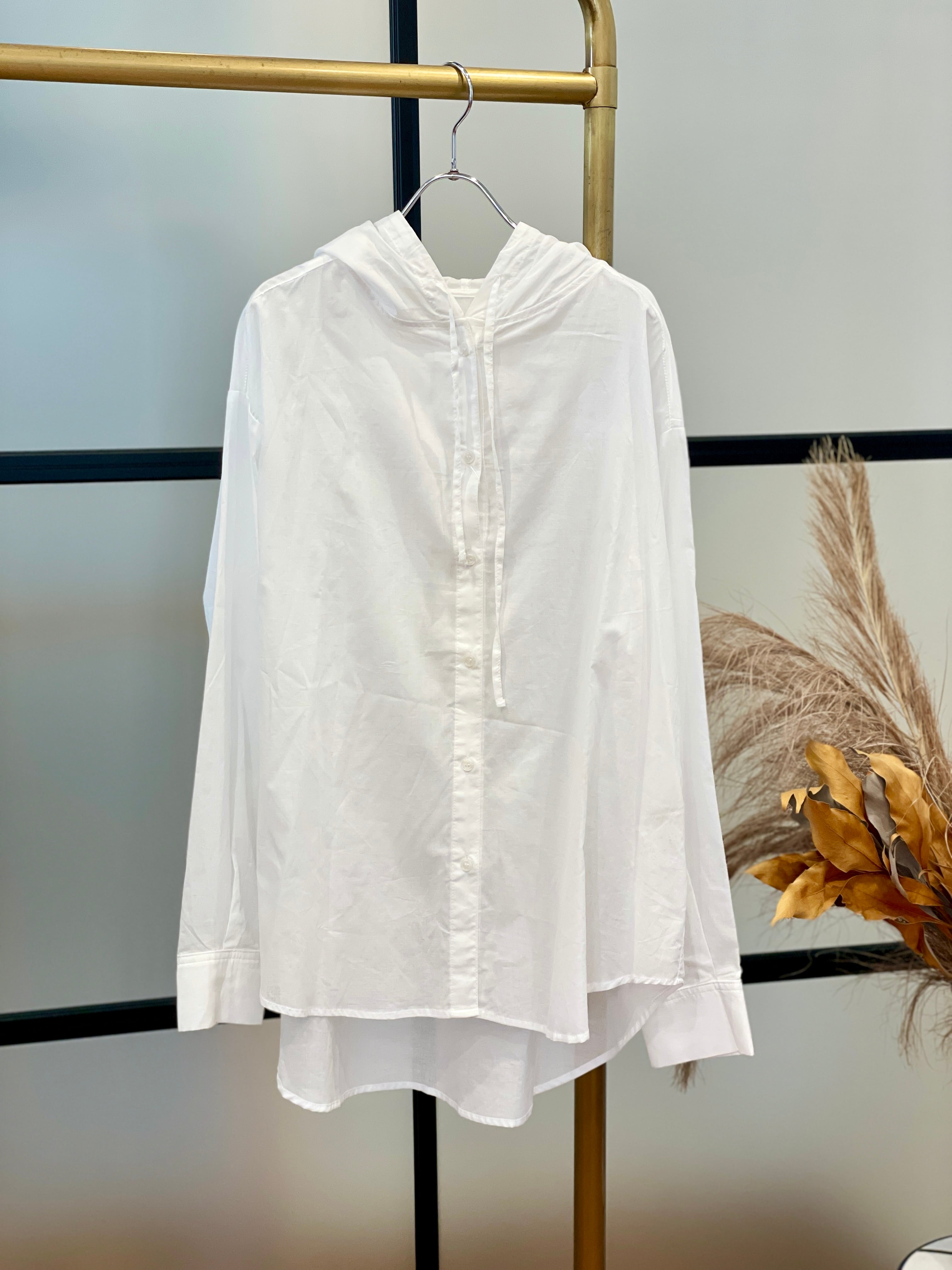 アウター感覚で着用出来る、フード付きシャツ。